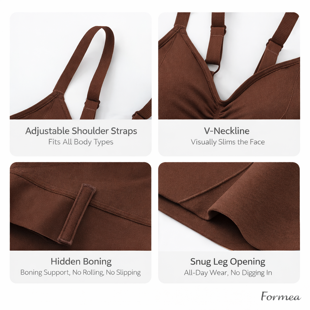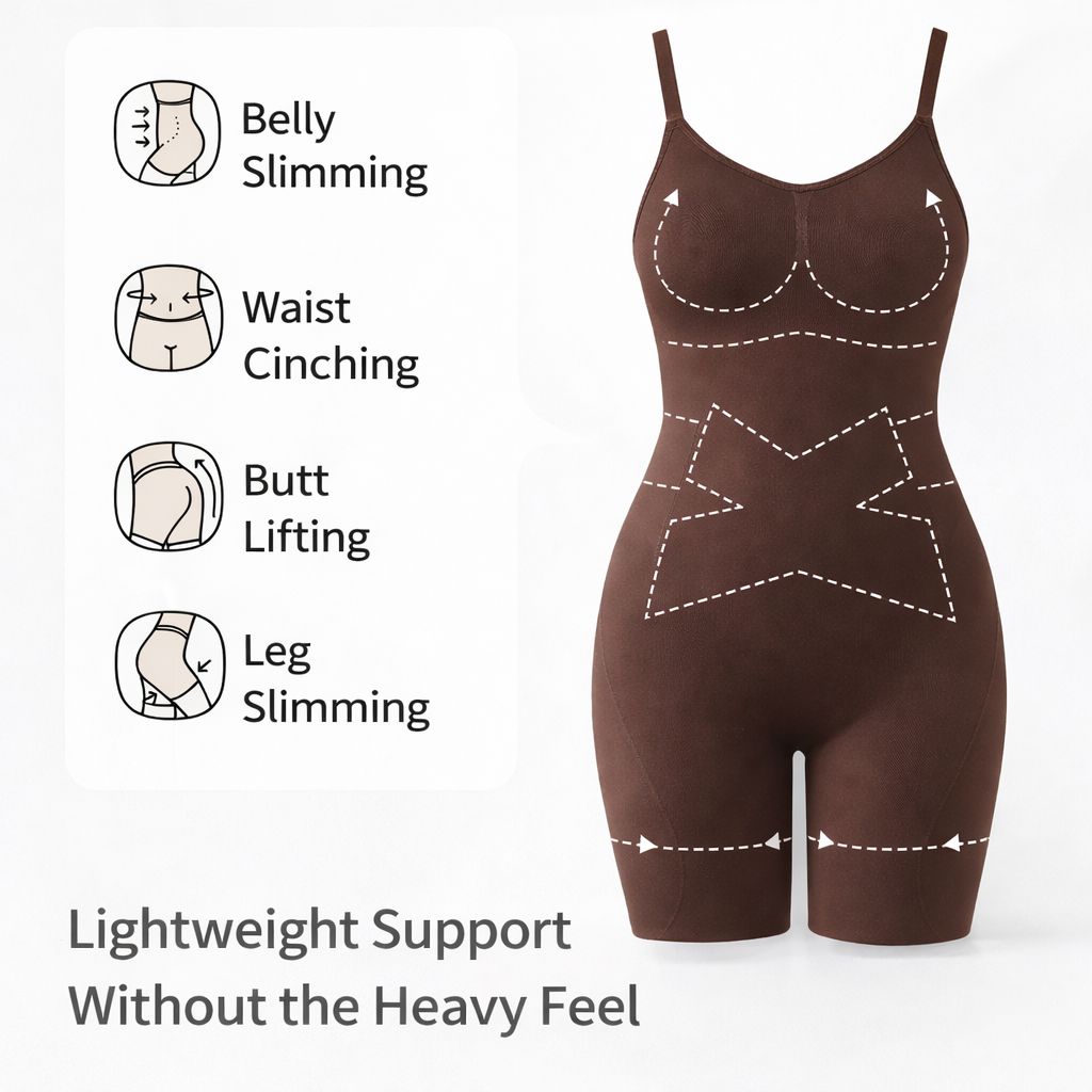 Our Bodysuit gives you an instant body boost: tummy control, butt lift, and waist sculpting in one breathable, seamless design — now with easy back access for effortless bathroom breaks.
